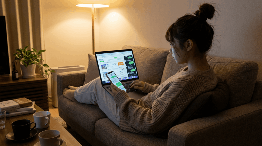 | 5分 | スマホを見ている | B店から返信「ありがとうございます!今すぐご案内できます」 | B店に好印象 |