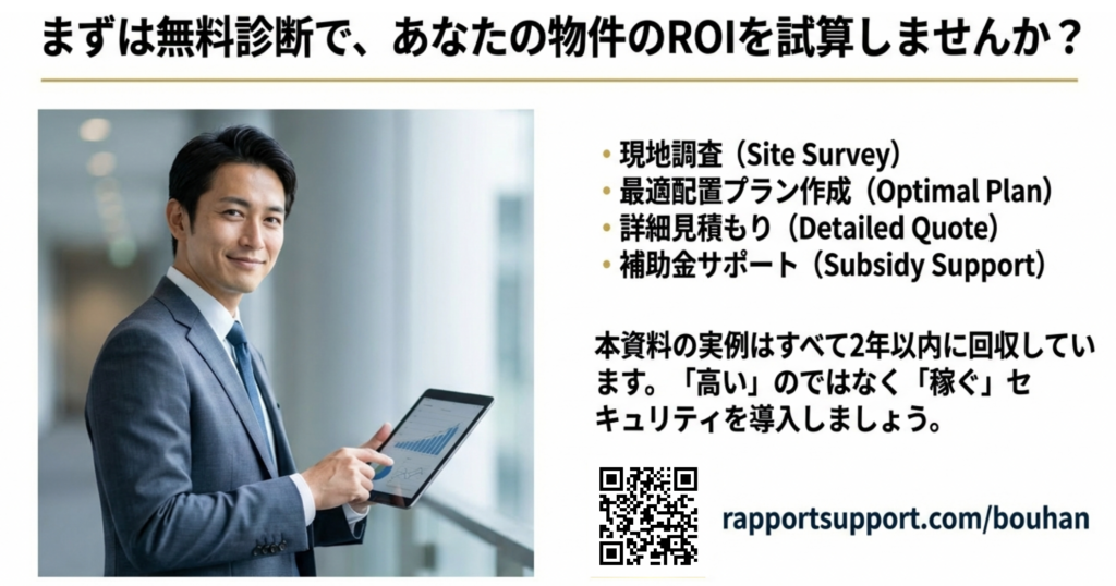 この記事で解説した実例5件は、すべて投資回収期間2年以内。「費用が高い」のではなく「回収できる投資」です。まずは無料見積もりで、あなたの物件のROIを確認してみませんか?