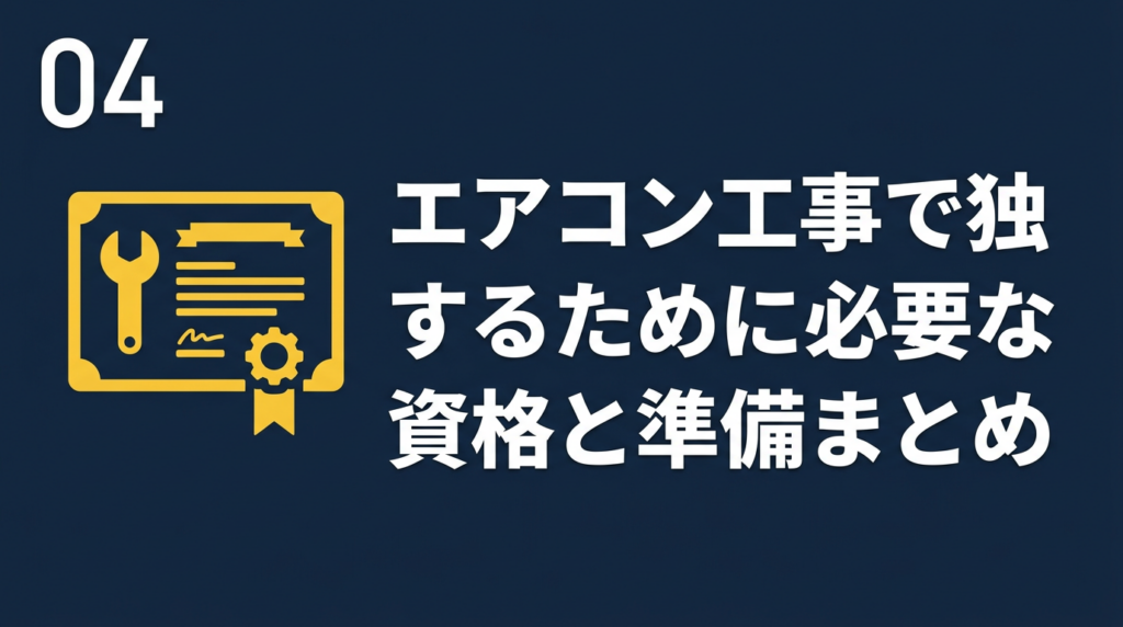 エアコン工事で独立するための資格・準備をまとめると次の通りです。