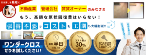 【安い早い匂わない塗る壁紙クロスの原状回復工法導入のワンダークロス】