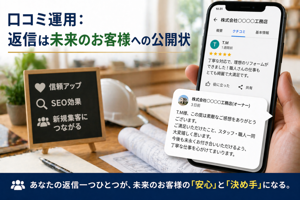 この一言があるだけで、それを見ている数百人の検討客は、この会社は失敗を隠さず、ちゃんと向き合って改善してくれる誠実な組織だと、逆に強い信頼を寄せてくれるようになります。