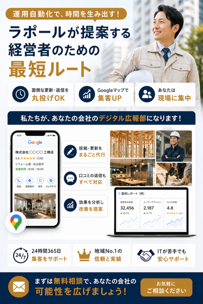 あなたの代わりに現場の熱量を汲み取り、Googleが好み、お客様がここなら任せられると確信する形に変えて発信し続ける、あなたの会社のデジタル広報部です。