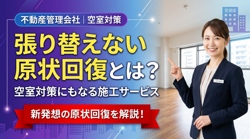 "張り替えない原状回復"は、単なるコストカット策ではない。空室対策・オーナー提案力・スタッフ効率・環境配慮・競合差別化——これらすべてに同時にプラスの影響を与える、管理会社の総合力を底上げする戦略的な取り組みだ。