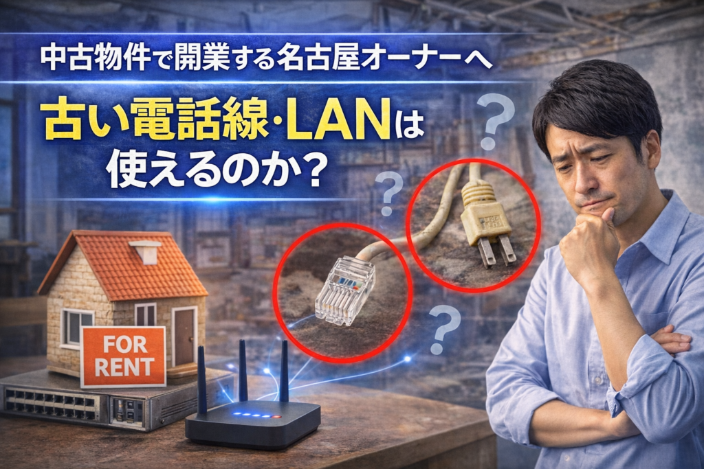 名古屋市内で中古ビルや古民家、あるいは居抜き物件を活用して新規開業を目指すオーナー様にとって、内装デザインや厨房機器の選定と同じくらい重要、かつ見落としがちなのが「既存の通信設備」の問題です。