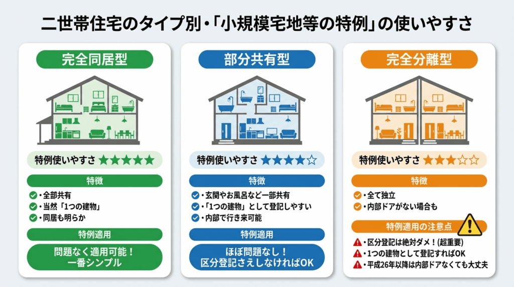 二世帯住宅のタイプ別・特例の使いやすさ