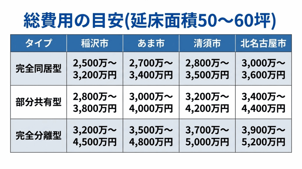 二世帯住宅の建築費用相場。清須市・あま市・稲沢市・北名古屋市での実例公開
