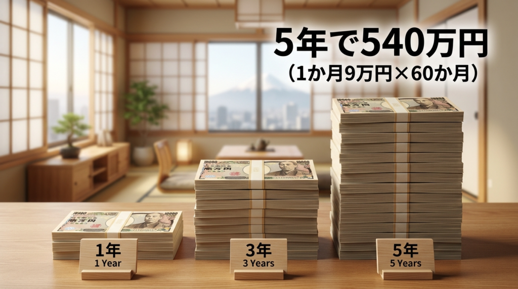 月90,000円なら、1か月先延ばしで90,000円、半年で540,000円です。