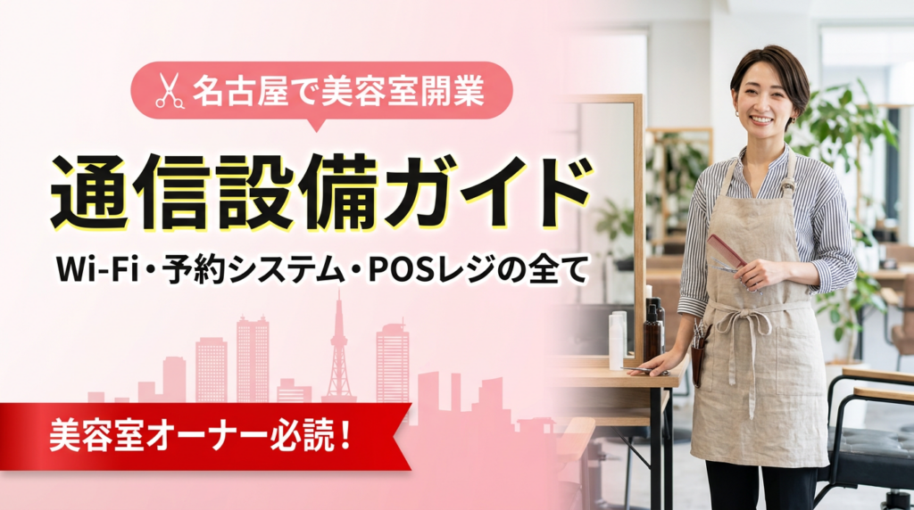 名古屋で美容室を開業する際の通信設備は「光回線+業務用Wi-Fi+予約システム+決済端末+防犯カメラ」が基本セットです。