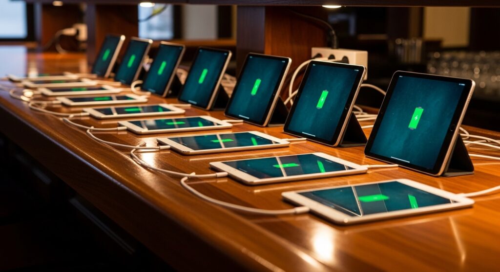 教訓:タブレット用の充電スタンド・ケーブルを各テーブルまたはカウンターに設置し、閉店後に全台充電するルーティンを作る。