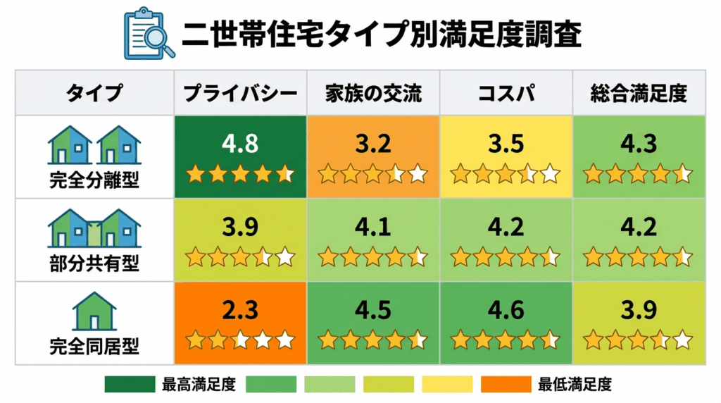 「完全分離も迷ったけど、予算と将来の関係性を考えたら、これがベストだった。毎朝玄関で顔を合わせて『おはよう』って言えるのが、ちょうどいい距離感」