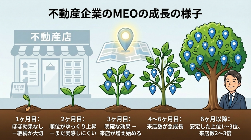 • 3ヶ月目:明確に効果が見える(来店数が増え始める)