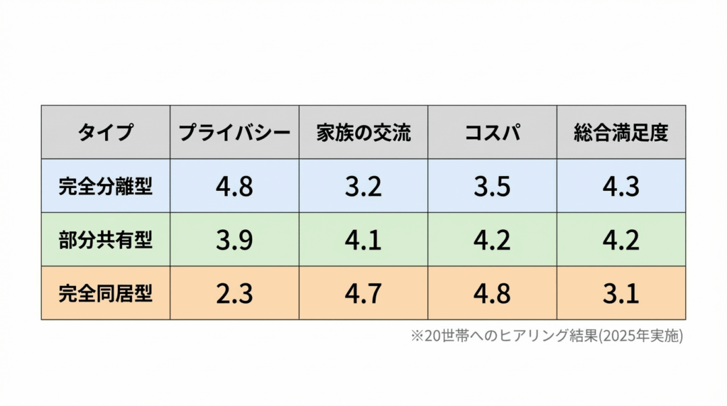 「完全分離も迷ったけど、予算と将来の関係性を考えたら、これがベストだった。毎朝玄関で顔を合わせて『おはよう』って言えるのが、ちょうどいい距離感」