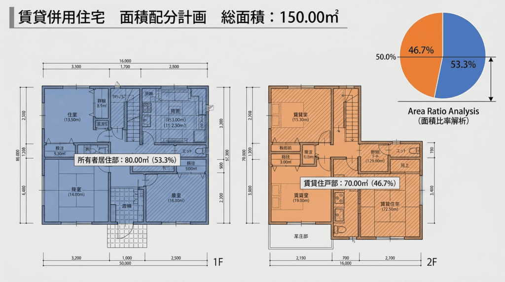 金融機関の多くは「自己居住部分が延床面積の50%以上」を住宅ローン適用の目安としています。