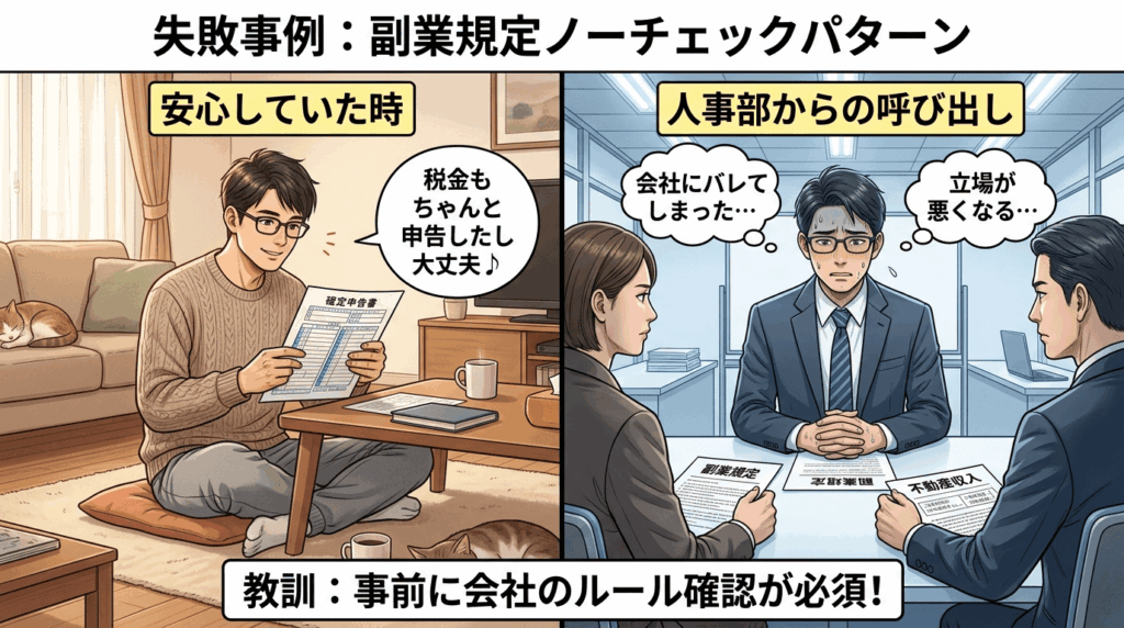 失敗事例④「会社の副業規定を確認しなかった」タイプ