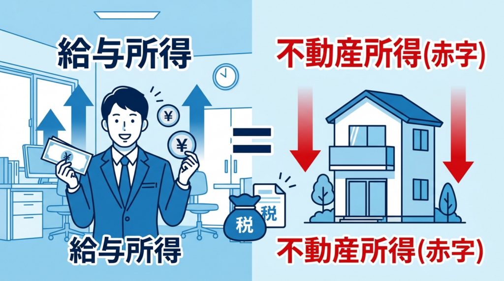 不動産所得が赤字(経費 > 賃貸収入)になった場合、その赤字額を給与所得から差し引くことができます。