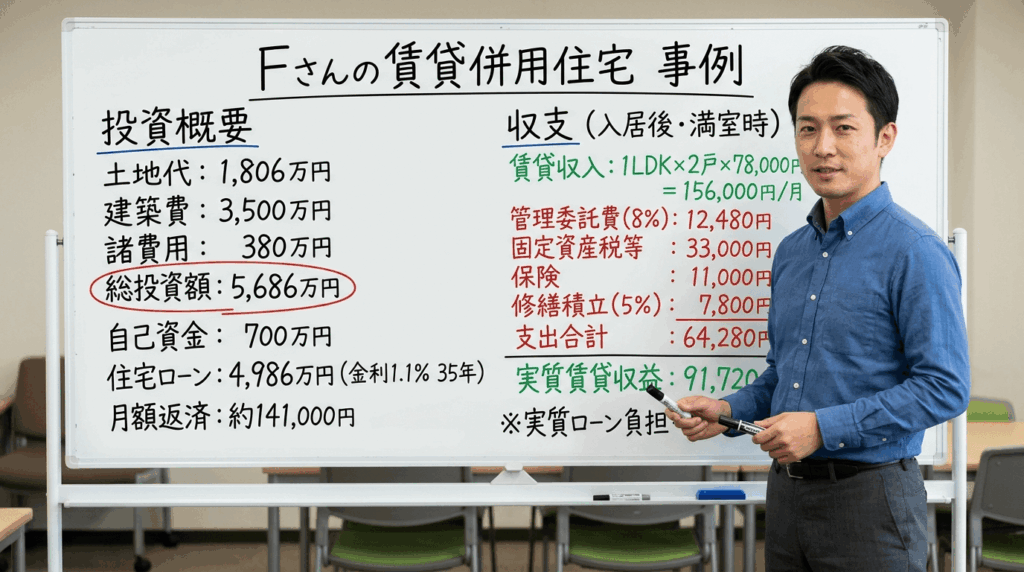 この指摘は数字だけ見ると正しいですが、賃貸併用住宅の収益は「家賃収入だけ」では測れません。