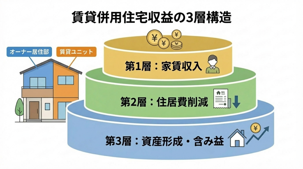 賃貸併用住宅の真の収益は3層構造になっています。