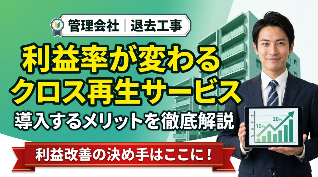 退去工事の利益率は、施工方法の選択によって大きく変わる。クロス再生サービスの導入は、マージン率の向上・工期短縮による回転率アップという「ダブル効果」をもたらす可能性がある。重要なのは、施工パートナーの確保・判定フローの整備・オーナーへの説明設計という3つの準備を整えることだ。施工の選択肢を持つことが、これからの賃貸管理の競争力になる。