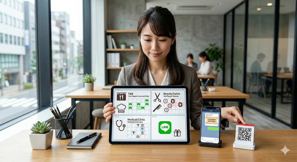 - 全業態共通:LINE公式アカウント(友だち登録→クーポン配信でリピーター育成)