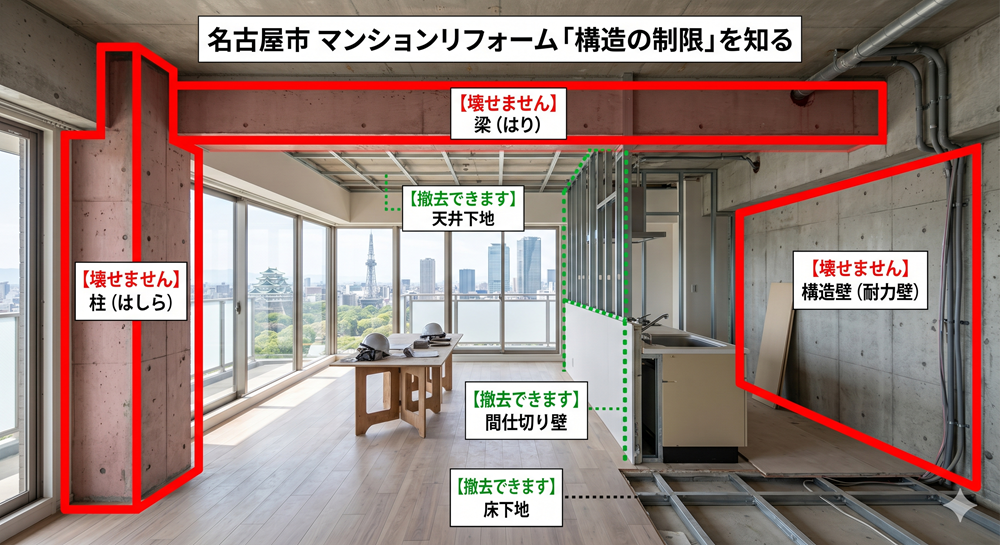 名古屋市でマンションリフォームを考え始めると、かなり早い段階でぶつかるのが「この壁って壊していいの?」「キッチンって動かせるの?」「3LDKを2LDKにしたいけど本当にできるの?」という疑問です。