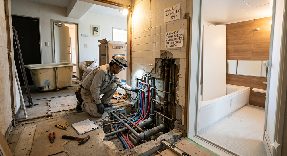 つまり水回りは「見える設備」より「見えない工事」が金額を押し上げやすい場所です。