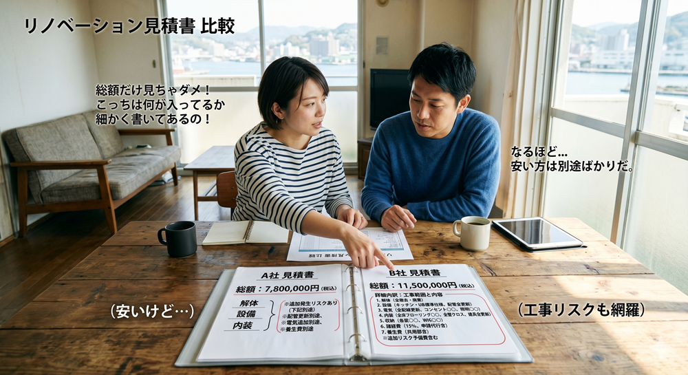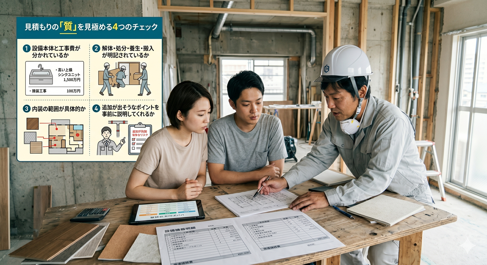 見積もり比較で本当に見るべきなのは総額だけではなく、「どこまで含んでいるか」です。