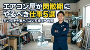 「冬場はエアコン工事がないから、休むしかない…」そう諦めていませんか?それは大きな間違いであり、もったいない思い込みです。確かに、エアコンの「取り付け工事」は激減します。しかし、世の中には冬にこそ需要が高まる仕事や、エア […]