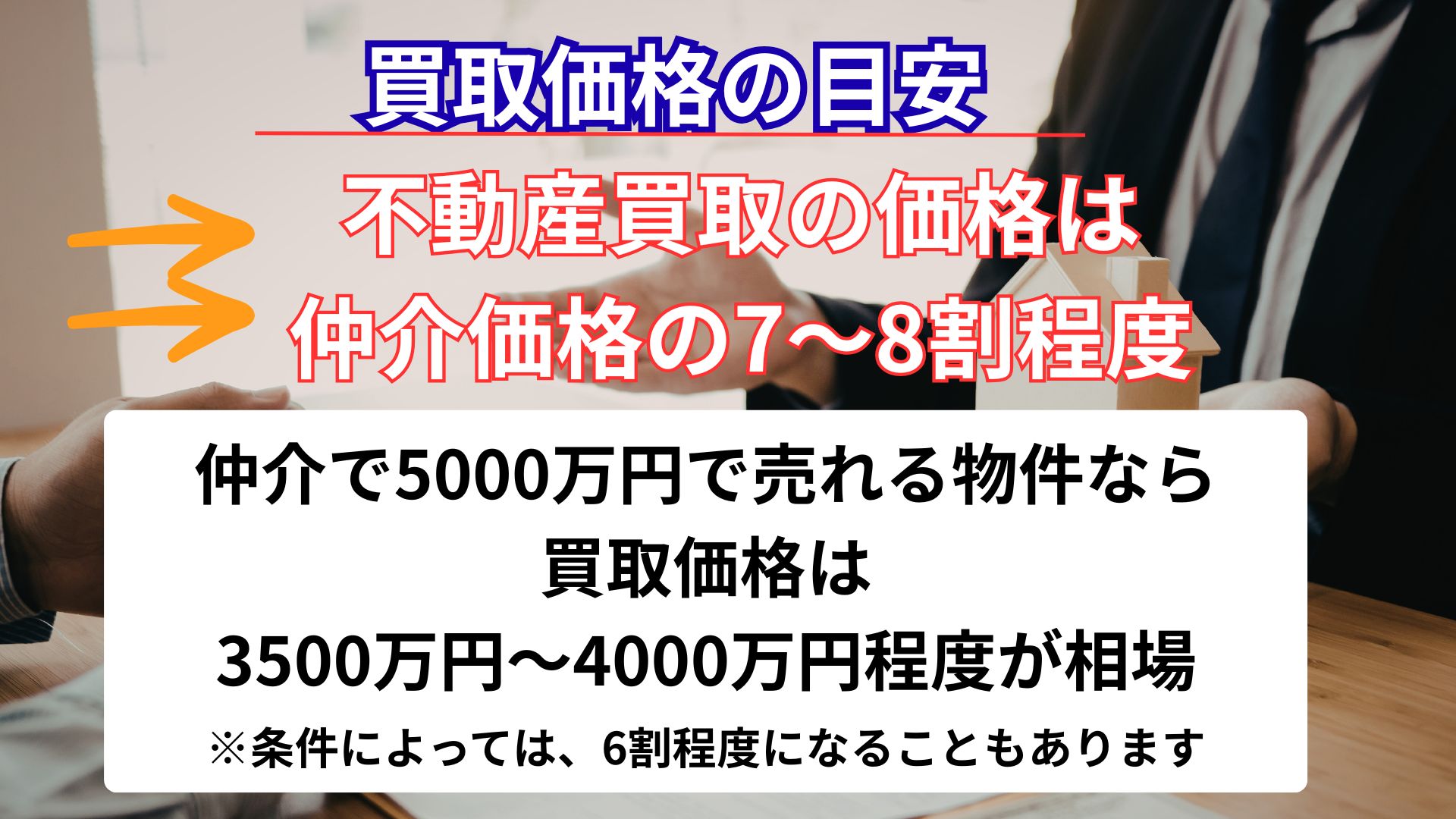 仲介価格の7〜8割になるケースが多いとされています。