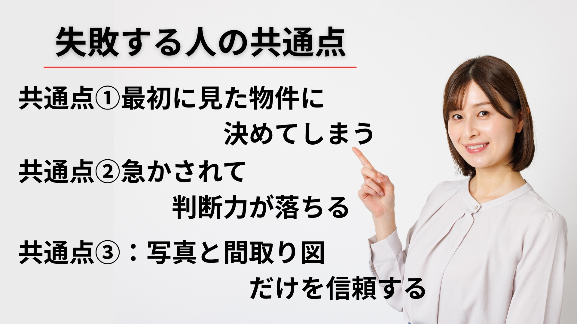 「よく確認しなかった」「他の物件を見ていなかった」という後悔につながります。