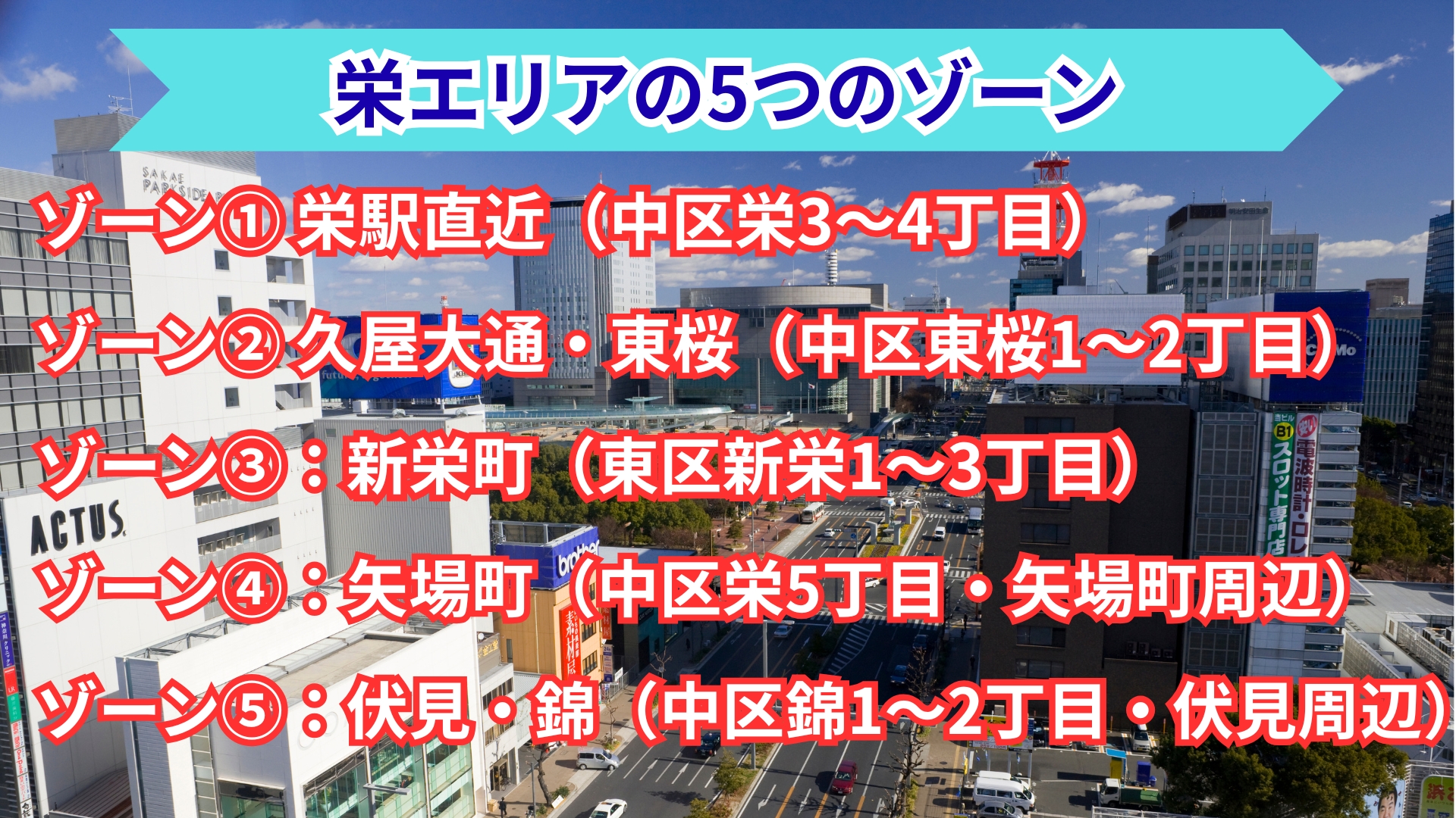 栄エリアの5つのゾーン