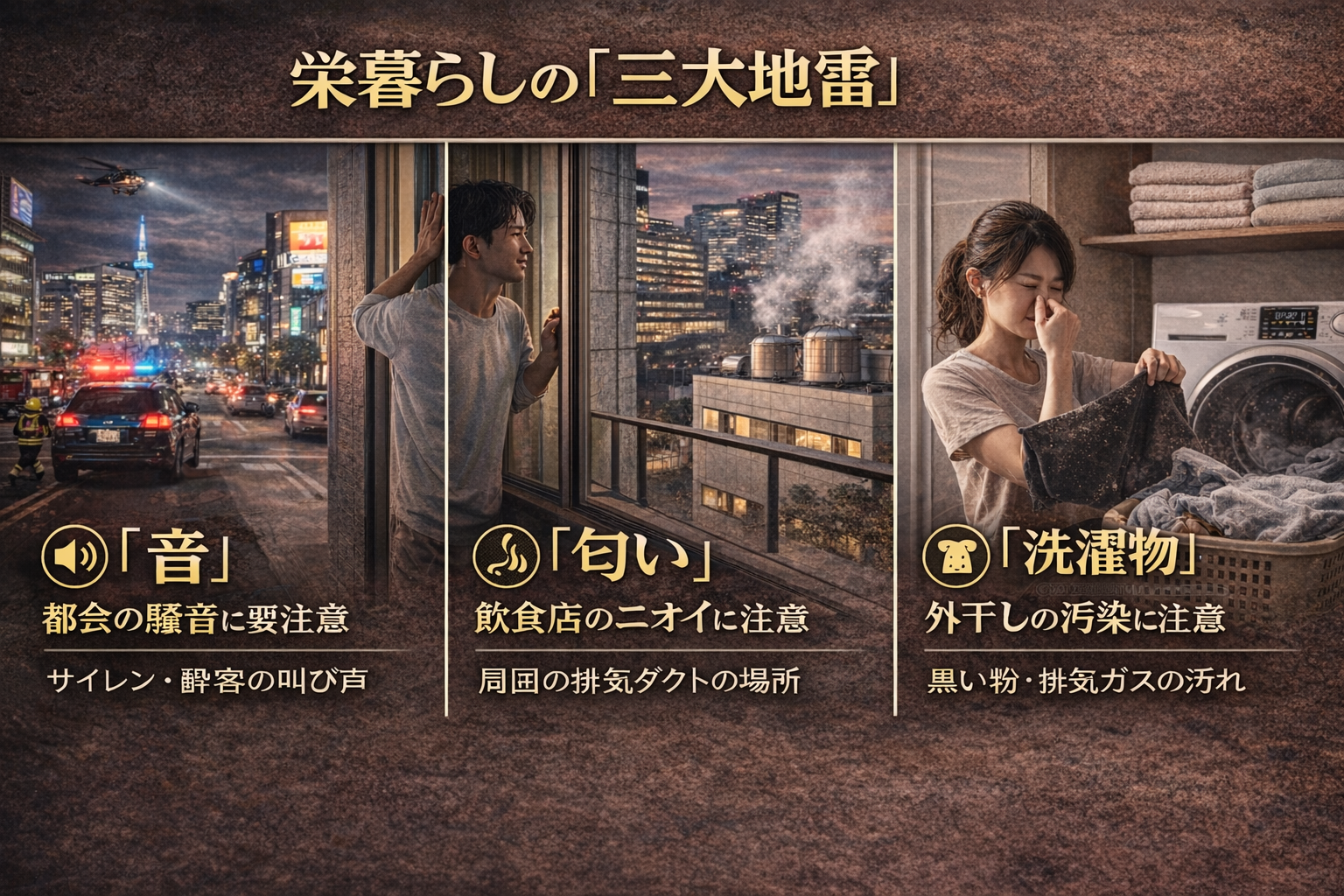 栄暮らしの「三大地雷」:音・匂い・洗濯物の具体的対策
