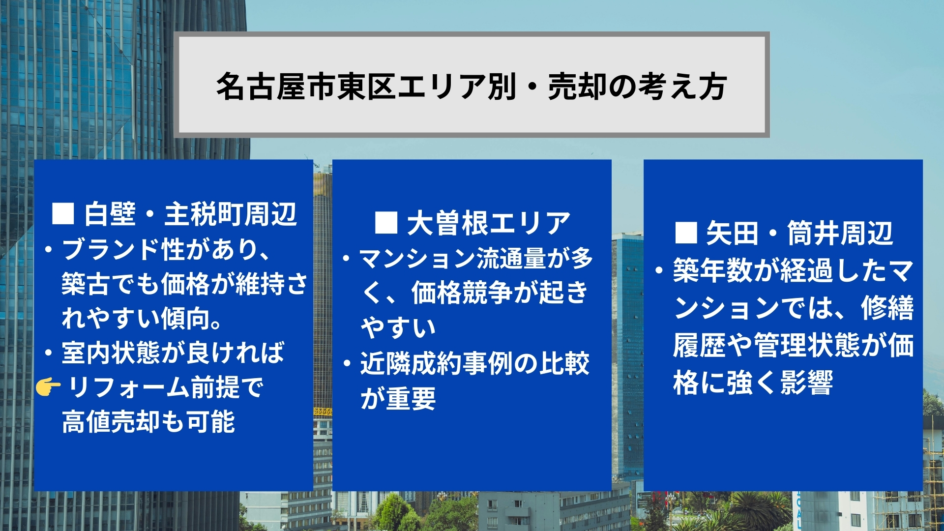 東区は流通が活発なエリアですが、価格設定を誤ると長期化します。
